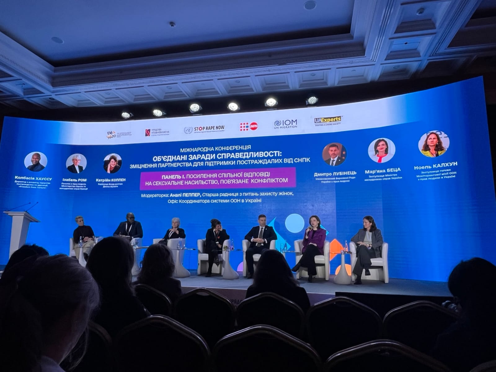 26 листопада 2025 року, у Києві, відбулася Міжнародна конференція «Об’єднані заради справедливості: зміцнення партнерства для підтримки постраждалих від сексуального насильства, пов’язаного з конфліктом (СНПК)», організована з нагоди завершення головування України в Глобальному альянсі із запобігання сексуальному насильству в умовах конфлікту.