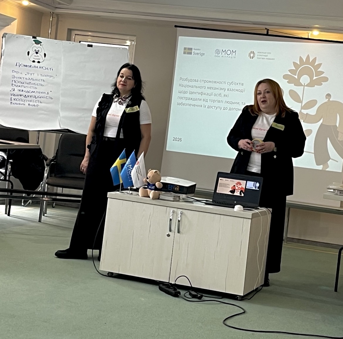 Завдяки професійності та інноваціям тренерок Оксани ШЛЮСАР та Альони Ігнатьєвої учасники навчання з легкістю та інтересом опановували основні положення та нормативні документи з протидії торгівлі людьми, правила поводження із постраждалими від торгівлі людьми та визначали шляхи взаємодії суб’єктів для надання допомоги особам у тому числі дітям, які постраждали від торгівлі людьми, отримали інші знання, які застосовуватимуть у своїй повсякденні роботі.